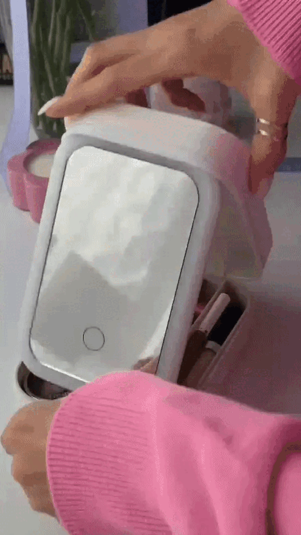 Le miroir LED intégré fonctionne avec une batterie rechargeable que vous pouvez facilement recharger via un câble USB (inclus). Cela vous permet de l’utiliser sans être branchée, ni encombrée par des câbles. Une seule charge offre plusieurs utilisations avec un éclairage optimal — idéal pour vous maquiller ou faire des retouches, même sans lumière naturelle.