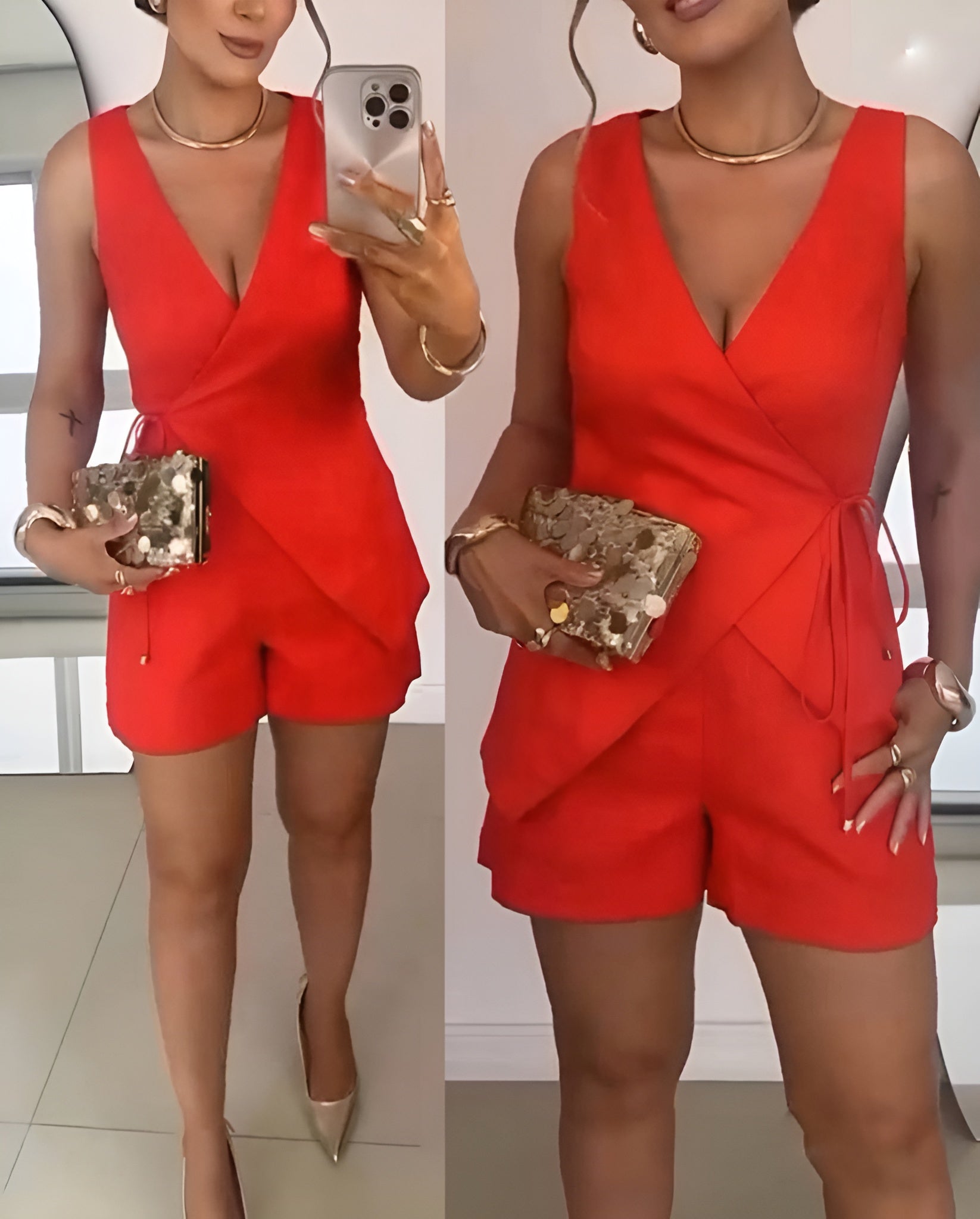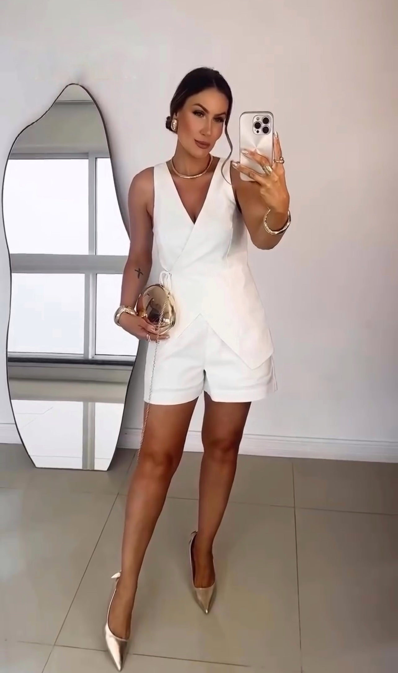 Il convient parfaitement aux deux ! Son design croisé avec un décolleté en V et un short à la coupe sophistiquée lui confère cet équilibre idéal entre élégance décontractée et style formel. Vous pouvez le porter avec un blazer et des talons pour un look professionnel, ou le combiner avec des sandales et des accessoires naturels pour un style plus décontracté. C'est un vêtement polyvalent qui s'adapte à votre journée, des réunions aux après-midis entre amis.