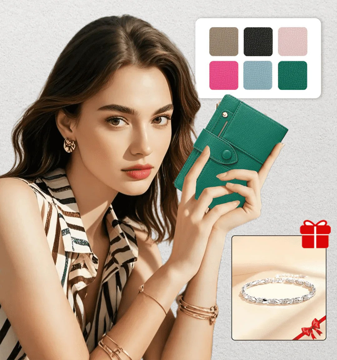 Portefeuille Bifold pour Femme + Bracelet de la chance en CADEAU