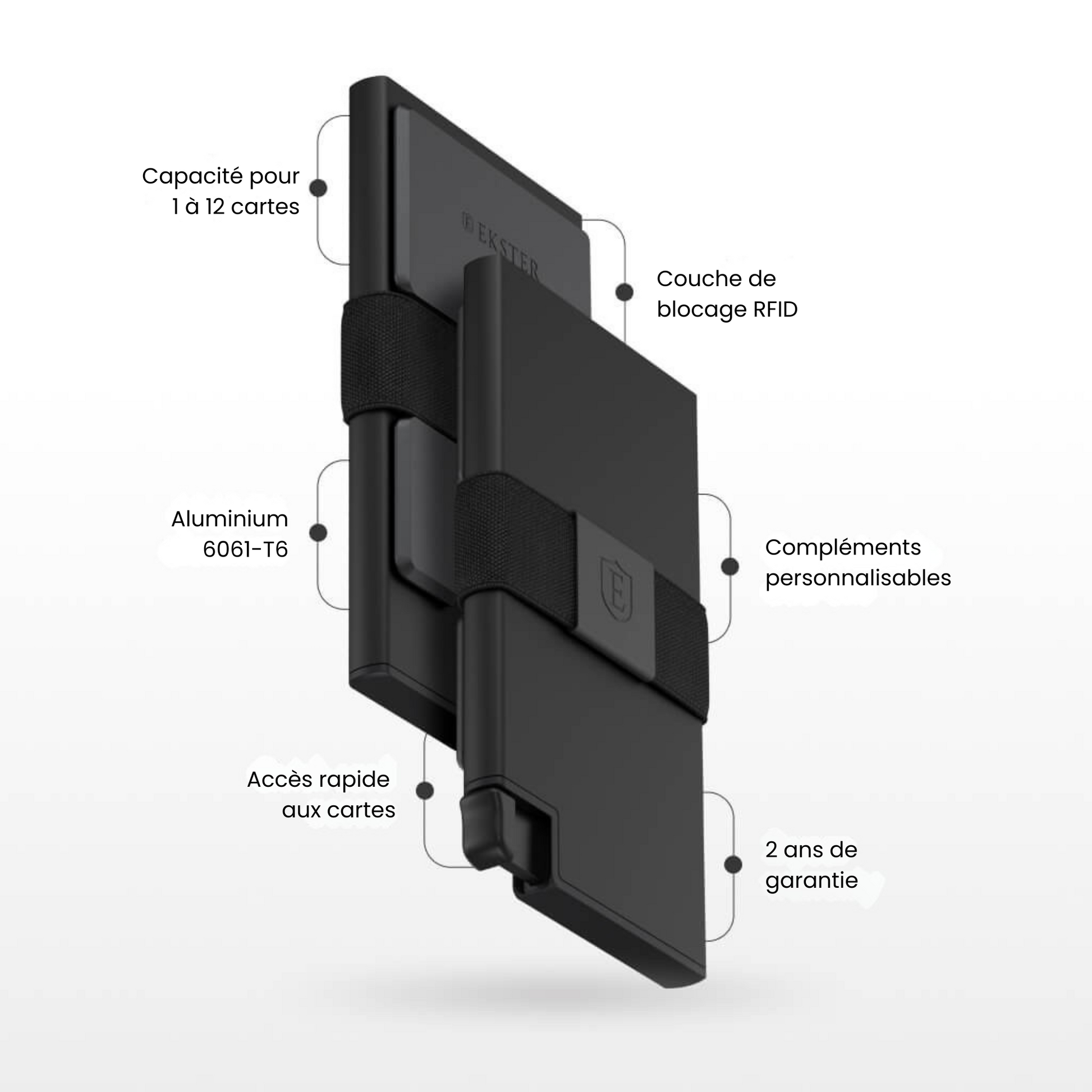 Grâce à notre mécanisme d'éjection de cartes, le contenu se déploie rapidement d'un simple clic, reléguant au passé la fouille de votre portefeuille.