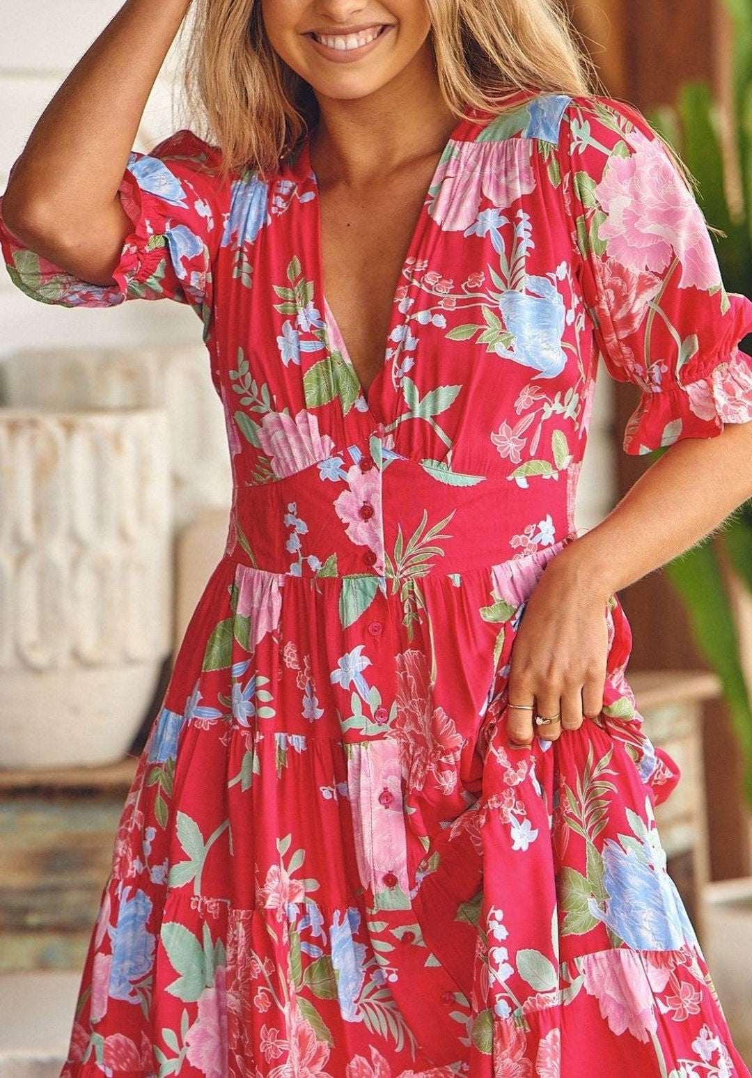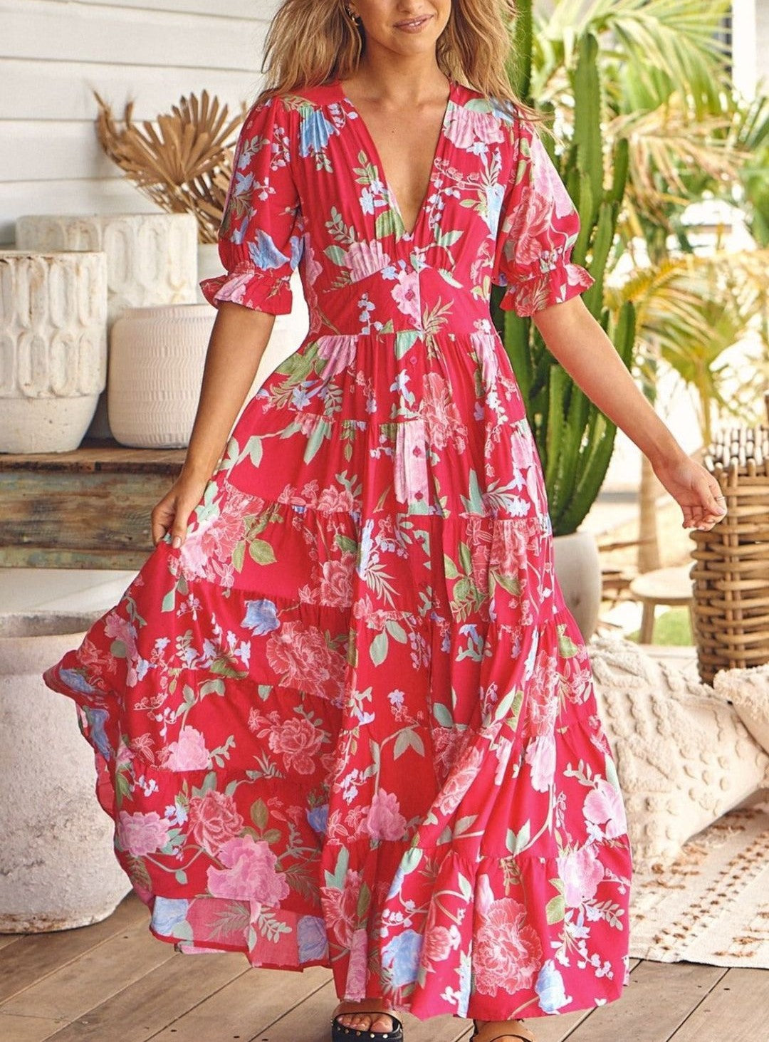 La Robe Longue Confortable à Col en V et Poche est conçue pour les femmes qui recherchent élégance et confort pendant l'été. Sa silhouette maxi avec décolleté en V, boutons sur le devant et dos élastiqué, met en valeur votre silhouette tout en vous offrant une liberté de mouvement. Avec une touche florale inspirée des paysages de Sicile, cette robe est idéale pour profiter d'une journée ensoleillée avec style et fraîcheur.